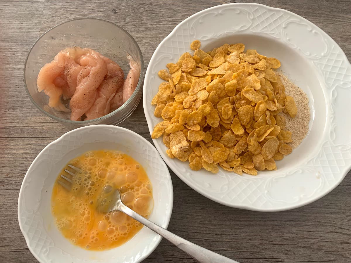 - 200 gramos de pechuga de pollo, preferiblemente fresca y sin piel, cortada en dados de 2×2 cm aproximadamente.