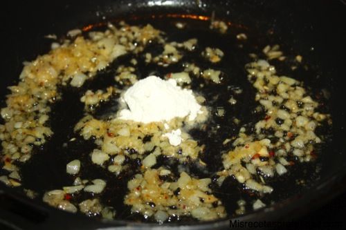 Poner en una sartén un poco de aceite echar el diente de ajo muy picadito y dorar un poco